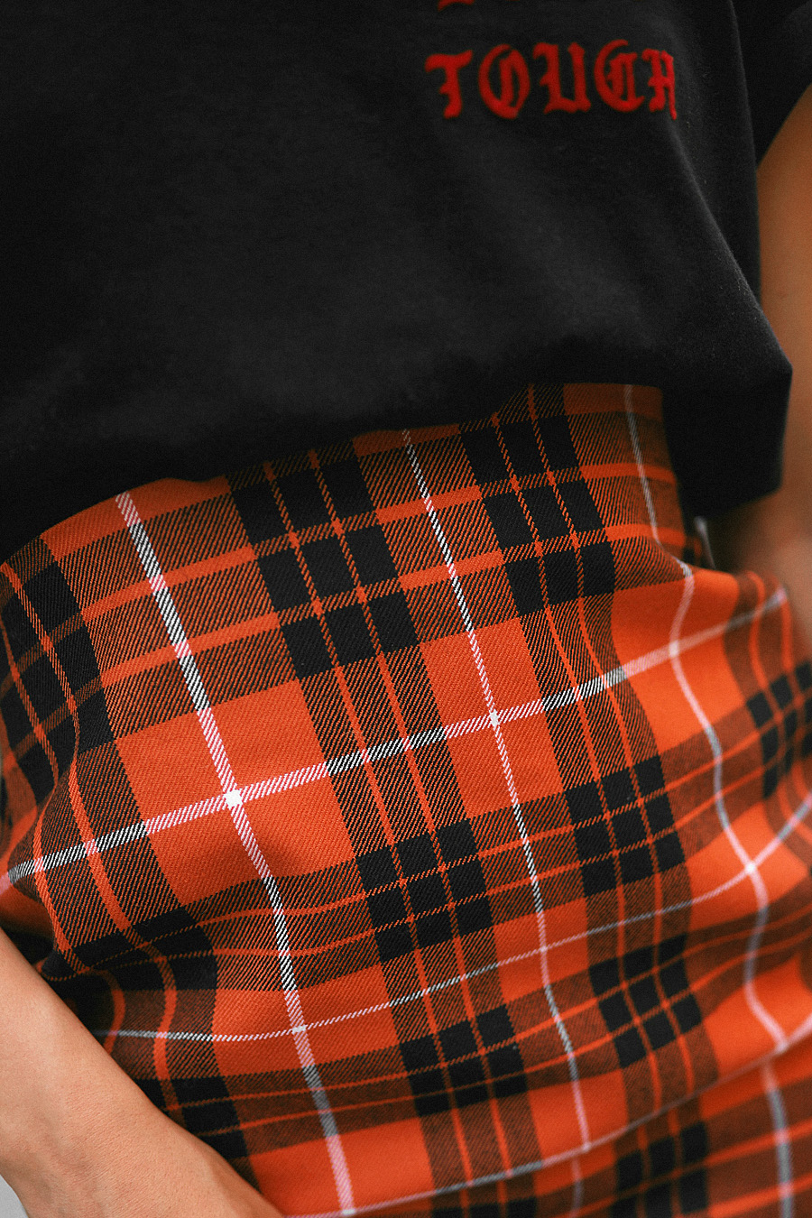 Vielleicht erinnern sich einige noch an diesen karierten Midi-Rock, den ich letztes Jahr in Los Angeles getragen habe. Man könnte meinen, an orangenem Karomuster sieht man sich schnell satt. Doch ich trage diesen Rock noch immer mindestens genau so gern wie vor einem Jahr. Und jetzt, wo die Fashion-Welt wieder verrückt nach Checked Pattern zu sein scheint, war es mehr als angebracht, diesen Rock mal wieder in einem Outfit-Post zu featuren.