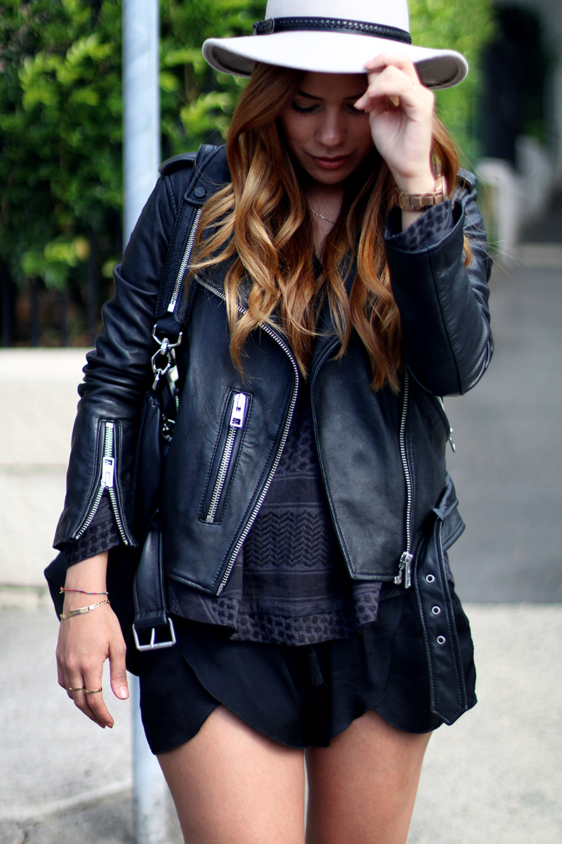 Ich liebe unten kurz und oben lang zu tragen. Ich selbst bin eh ein riesen Shortsfan und trage auch sehr gerne Shorts mit einem Pulli drüber. Deine Kombi mit der Lederjacke sieht toll aus.