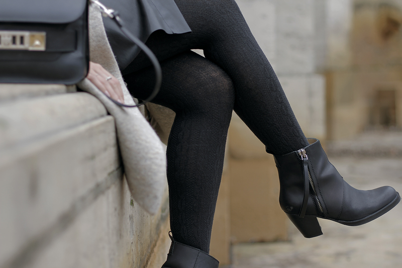 Wenn ihr euch an ein paar meiner Outfits aus dem letztem Jahr erinnert, wisst ihr vielleicht, dass ich kein großer Fan von Strumpfhosen bin. Dabei meine ich vor allem Nylonstrümpfe, ob blickdicht oder nicht. Ich mag die Struktur nicht und manchmal ist das schwarz nicht einmal richtig schwarz und hat entweder einen Braun- oder einen Blaustich. Nun habe ich aber ein paar Strumpfhosen gefunden, die sogar mir gefallen: Gestrickte Strumpfhosen!