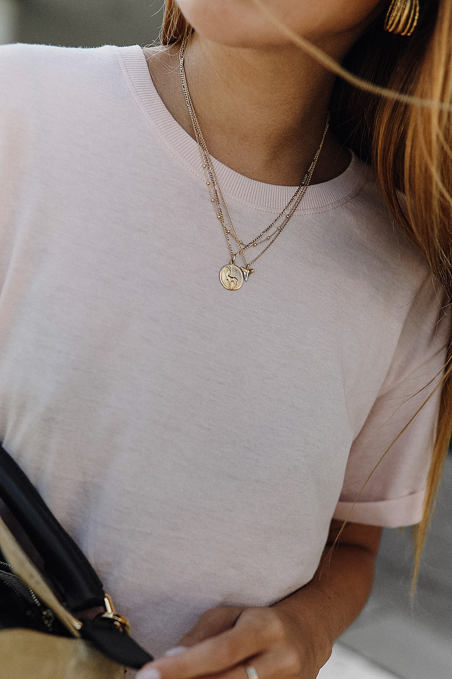 Die Farbkombination des Looks hat es mir schwer angetan – besonders das schlichte rosa Shirt harmoniert so toll zu deinem Hautton!