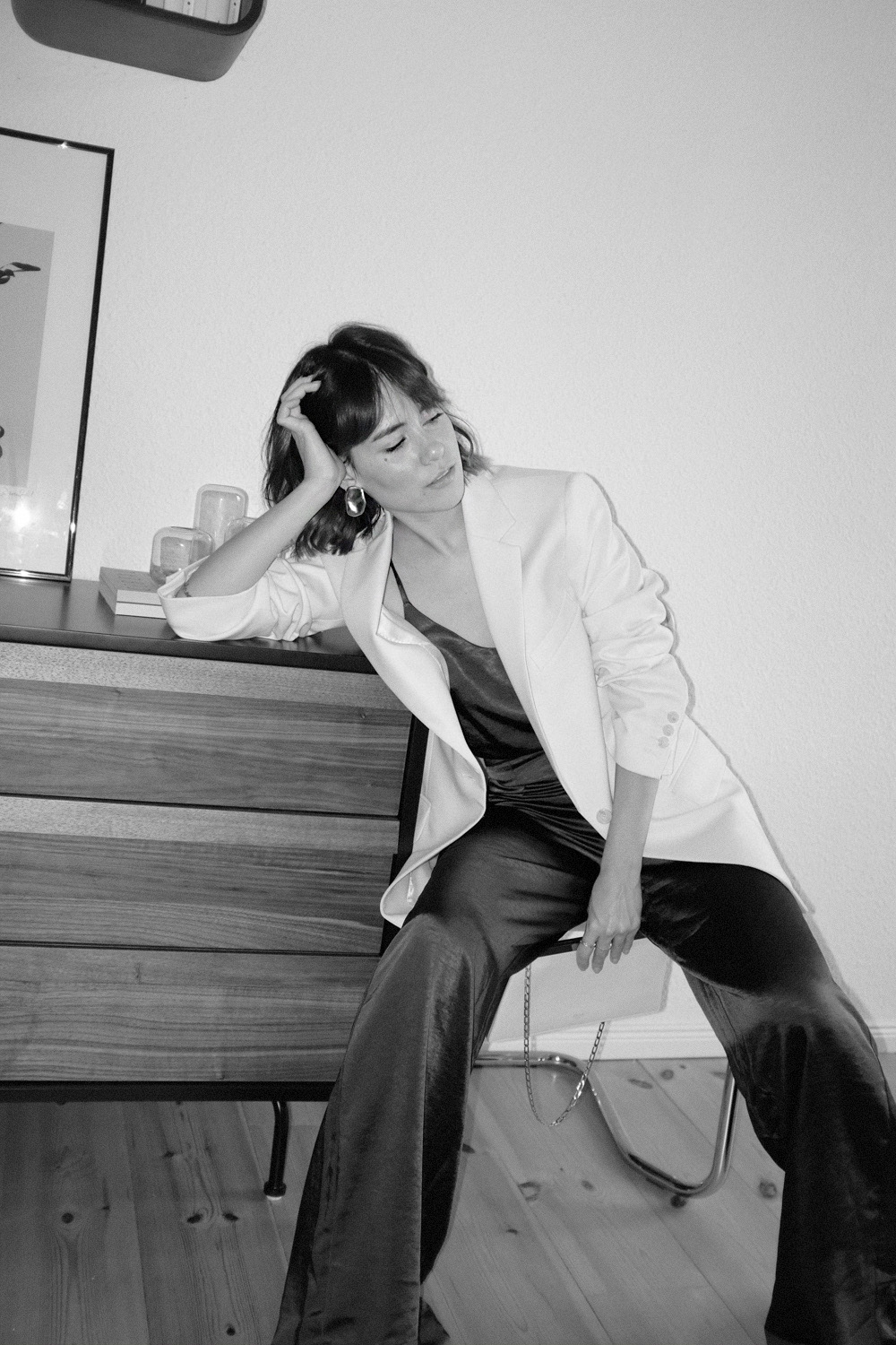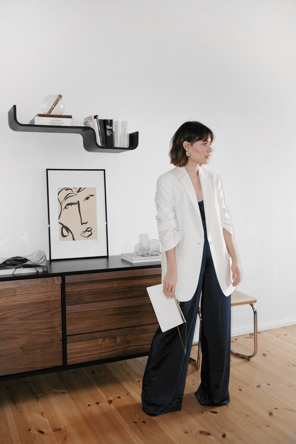 When I first saw this blue satin-finished ensemble I immediately though of New Year’s Eve. palazzo pants, a matching camisole top and a white blazer would be perfect for that – comfortable and chic. The silver accessoires are giving it the final touch. Though I think a red lipstick would really be the cherry on top but since I haven’t worn a red lip all year it wouldn’t have felt naturally to me. So these are my two cents concerning an outfit for New Year’s Eve or other festive occasions. What are you going to wear?