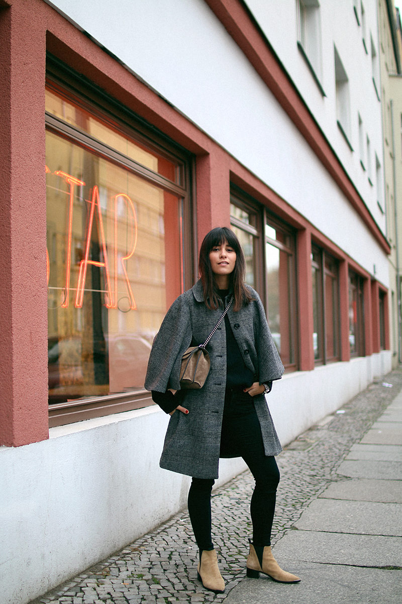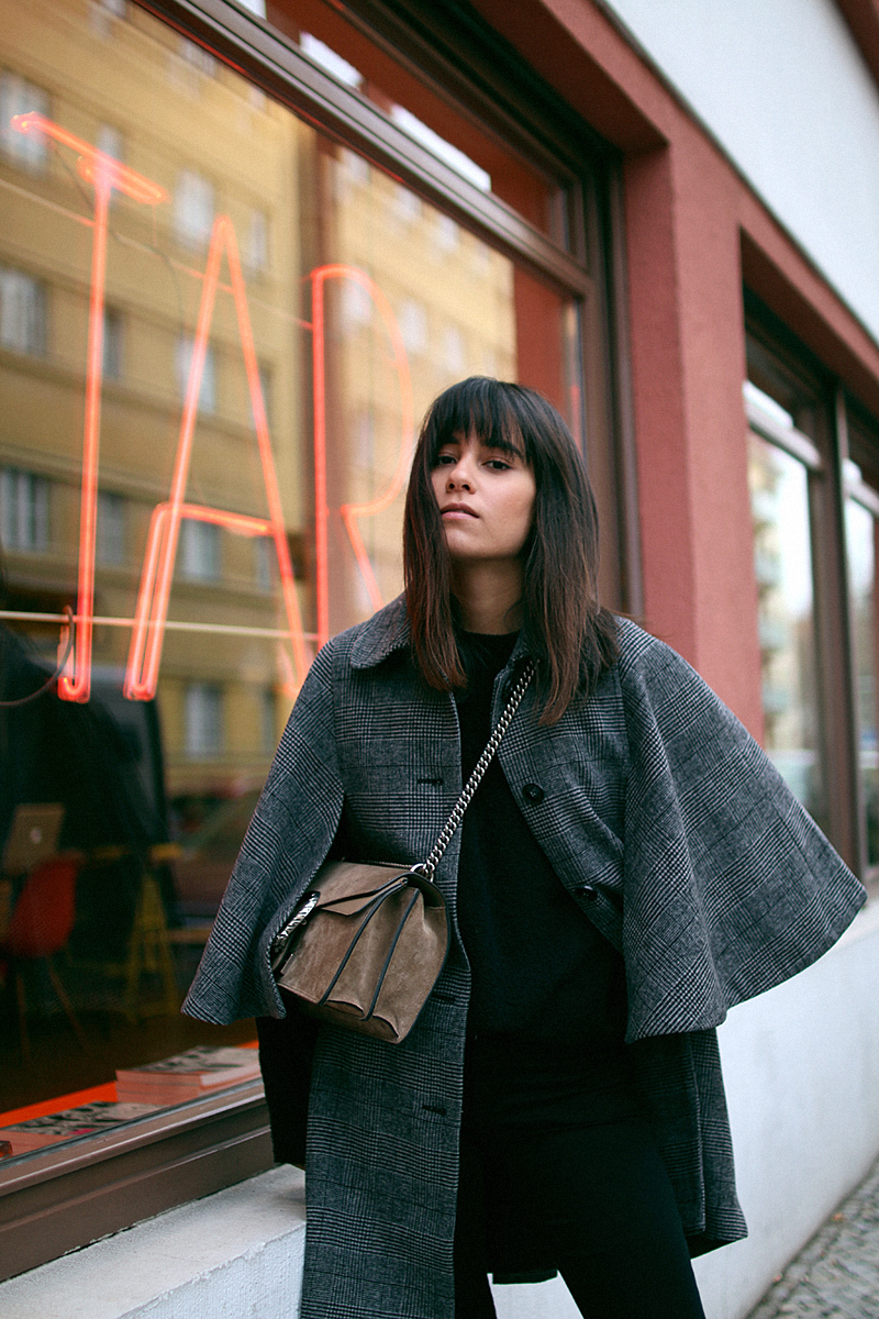 Das Cape steht dir wirklich mega gut. Die Kombination von dem Plaidmuster und den Jensen Velourboots ist wirklich ein toller Kontrast. Habt ihr die Fotos in der Nähe vom Rosa Luxemburg Platz aufgenommen?