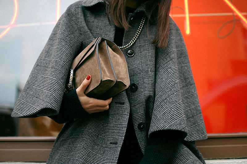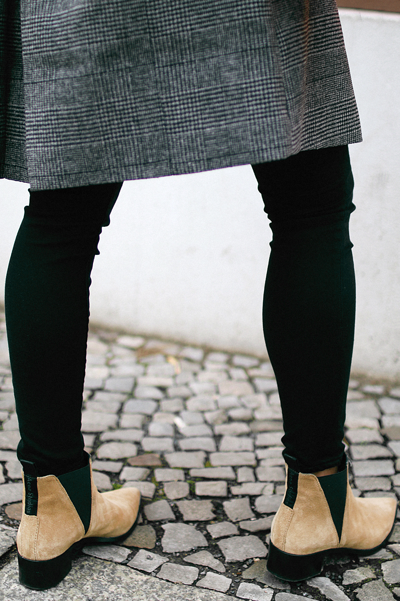 das Glencheck-Muster finde ich super schön! schaut immer sehr edel aus, wenn man Karo mit schwarze kombiniert. das Cape ist echt klasse. man kann super noch drunter Layern und es wird nie langweilig. die Chelseaboots dazu sind eine schöne Abrundung :)