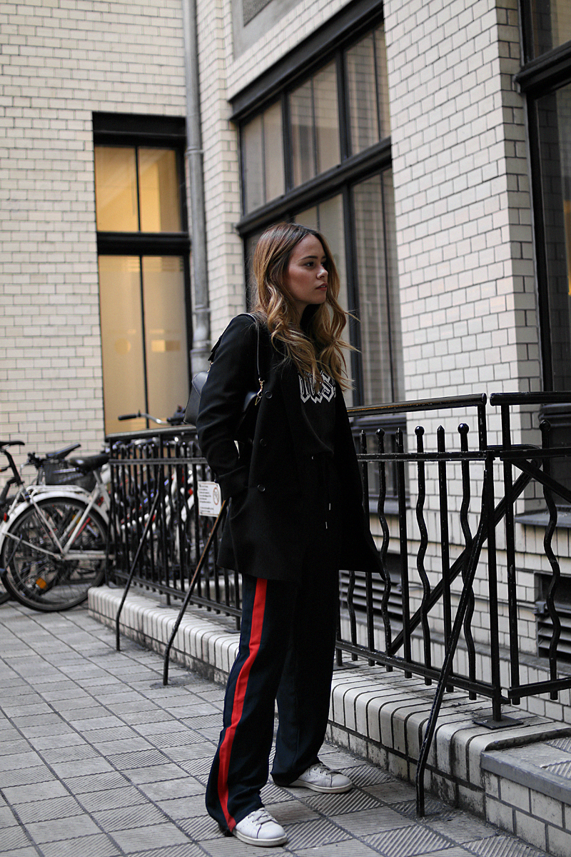 wearingBlazer – All Saints (similar here or here). „Muse“ T-Shirt – Zadig&Voltaire*. Side-stripe Trousers – H&M (similar here or here). Stan Smith Sneakers – Adidas. „Logo“ Bag – J.W.Anderson (similar).