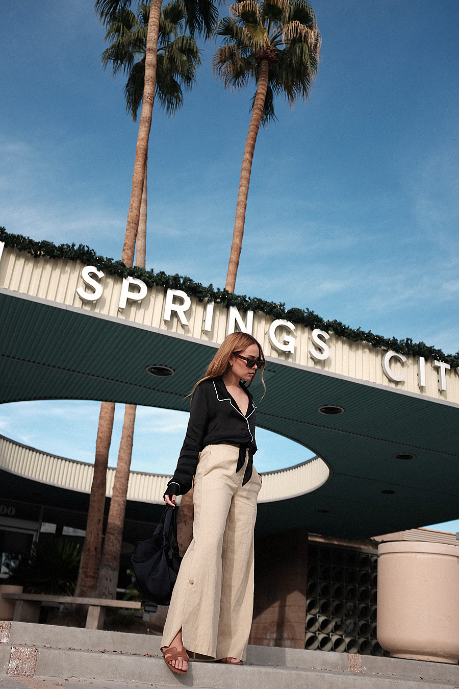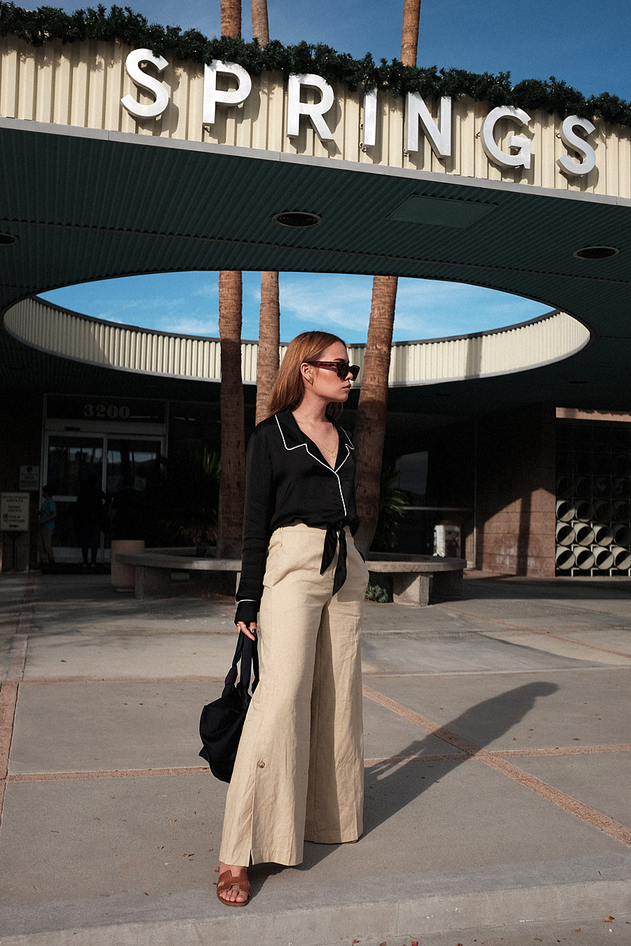 wearingPyjama-style silk top – Aritzia (similar here or here). Wide pants – Style Nanda (similar). „Ascot“ bag – The Row (similar). „Aurelie“ watch – Karl Lagerfeld. „Emma“ sunglasses – Céline. Earrings – Teetharejade x Stilnest.