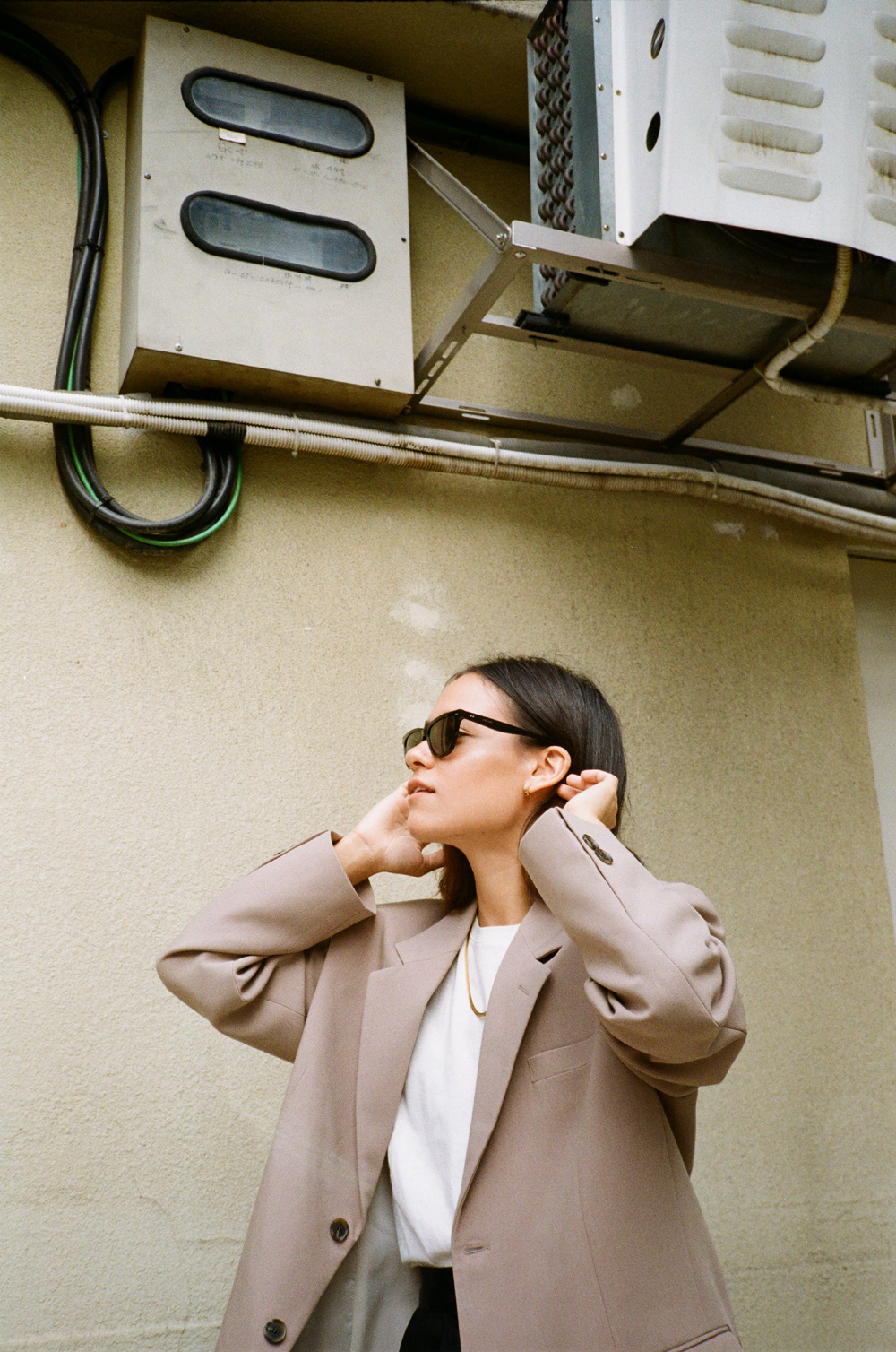 Vielleicht kann man diesen Blogpost als kleine Hommage an Oversized Blazer und dunklen Sonnenbrillen ansehen – denn die tragen wir nun mal am liebsten. Ich bin hier zusammen mit Elisa abgelichtet, die mit uns in Seoul war. Das eine Set Fotos wurde übrigens analog fotografiert und das andere digital, die Posen sind jedoch bewusst ähnlich. Wir tragen beide Blazer, die wir in Südkorea gekauft haben, aber ich habe euch viele ähnliche Alternativen verlinkt – scrollt dazu einfach bis zum Ende des Beitrags.
