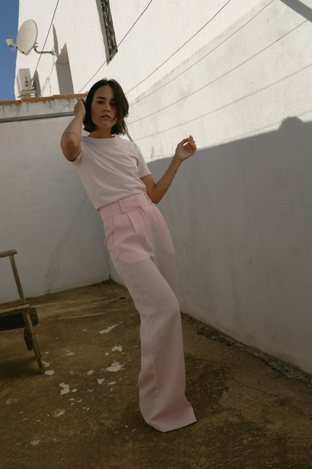 Pink t-shirt EDITED the label. Pink pants EDITED the label. Bracelet Maria Black.