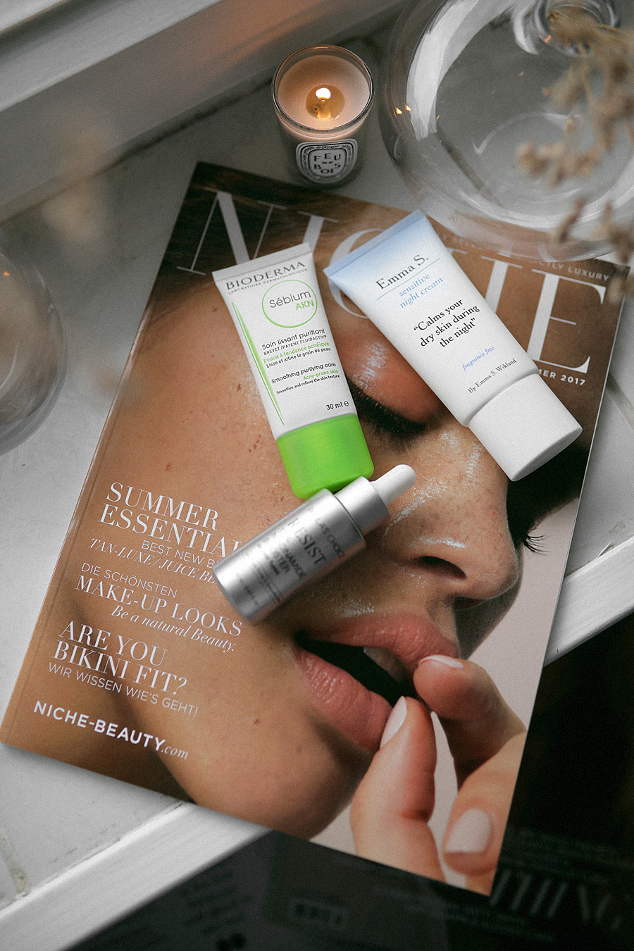in this photoSensitive Night Cream* – Emma S.. Sébium AKN – Bioderma. Niacinamide Booster* – Paula’s Choice.